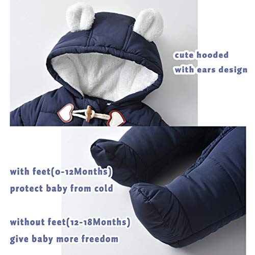 ▶ Baby Winter Romper: handige ritssluiting + klauw knoopsluiting, dubbele warmte, gemakkelijk om luiers te dragen en te verschonen. met voeten (0-12Maanden), bescherm de baby tegen kou.