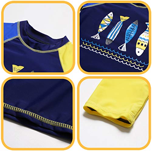 LUOEM Jongens Twee Stukken Badpak Set Lange Mouw Baby Peuter Badkleding Badpak Rash Guards en Hoed Donker Blauw Maat 4