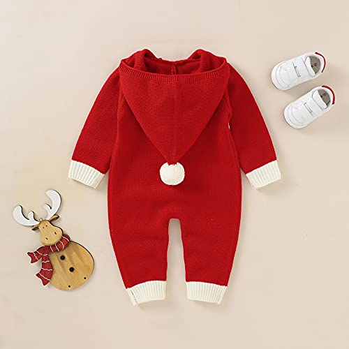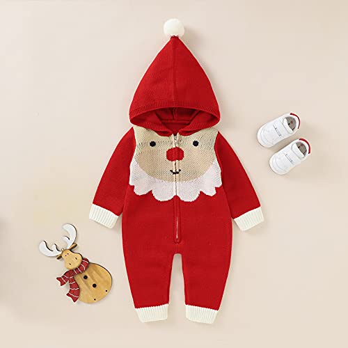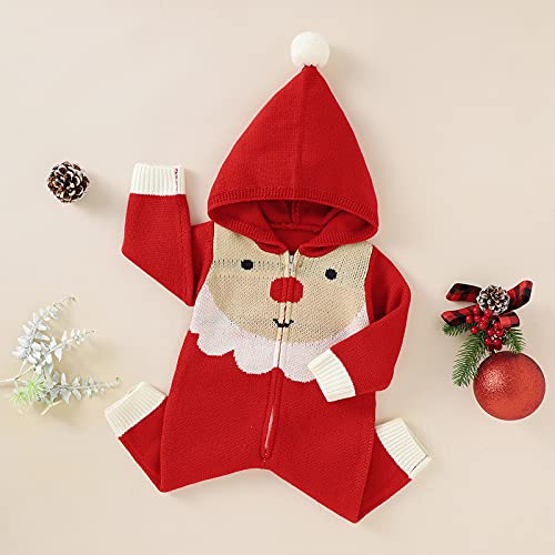 puseky Pasgeboren Baby Kerst Romper, Gebreide Kerstman Trui Romper Hooded Front Rits Jumpsuit 0-18M