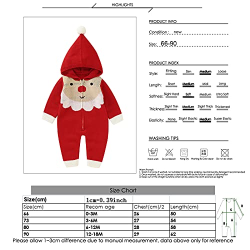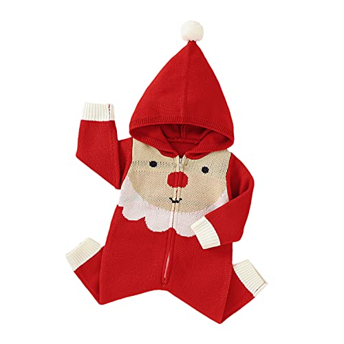 Specification: puseky Pasgeboren Baby Kerst Romper, Gebreide Kerstman Trui Romper Hooded Front Rits Jumpsuit 0-18M