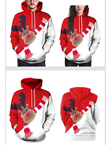 Specification: WBYFDC Dames Hoodie Jas Kleur Bijpassende Eland Kerst Dierenprint Paar Outfit Hooded Outdoor Straat Patroon Herfst…