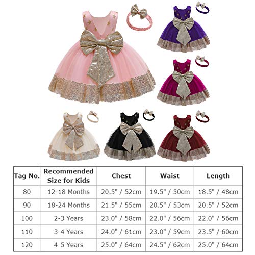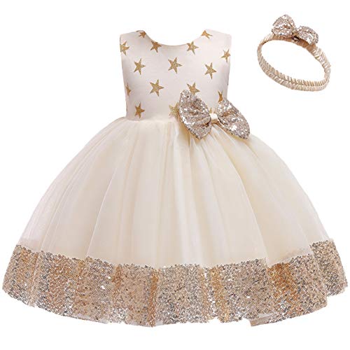 ✿ Mooie meisjeskleding – schattige doopjurk voor kleine kinderen en baby’s, prinsessenjurk, formele baljurk, feestjurk, bruiloft, verjaardagsjurk, mouwloze pailletten, strik, ronde hals, V-hals, rugtule, avondjurk, match met een strik hoofdband, 2 stuks outfit kledingset