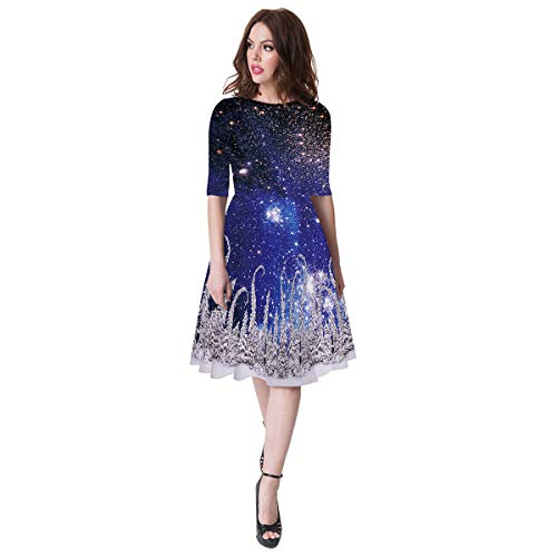 ❤❤ Nieuw ontwerp: dames meisjes kerstjurk, klassieke ronde hals, korte of halve mouwen, boven de knie lengte, A-lijn uitlopende swing jurk. Chique kerstpatroon ontwerp, zoals sterrenhemel, boom, katten, kerstman, polkadot, windmolen, benadrukken de vakantiesfeer. Deze bijpassende jurk voor moedermeisjes maakt jou en je meisje aantrekkelijker in de massa. Je kunt het ook proberen met je vrienden, zussen, tantes, neven en andere familieleden.