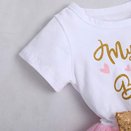 ✿ Uniek design: bovendeel met korte mouwen en chique, glinsterende, glanzende letters “My 1e Birthday”, “1”, “2”, “3” en schattig cartoon-patroon, stijlvol en betoverend. Elastisch tailledesign, versierd met een glinsterende pailletten-strikknoopstijl, polka dots roze/paars/blauwe kleur tule rok, rok met ademend meerlaags tule tutu-design, dat perfect bij de zachte zoom past, beter bij het lichaam van je baby past en gemakkelijk aan en uit te trekken is.
