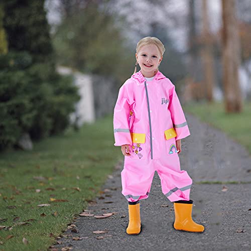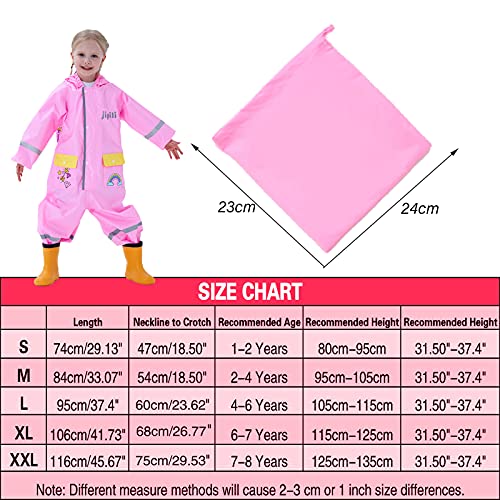 ☔【Multifunctioneel ontwerp】Ons baby regenpak hebben zakken voor je kinderen om wat kleine spullen in op te bergen. Onze regenjas caps, manchetten, broeken, voor- en achterkant zijn voorzien van reflecterende strips, als het licht niet goed is, kan dit als waarschuwing worden gebruikt.