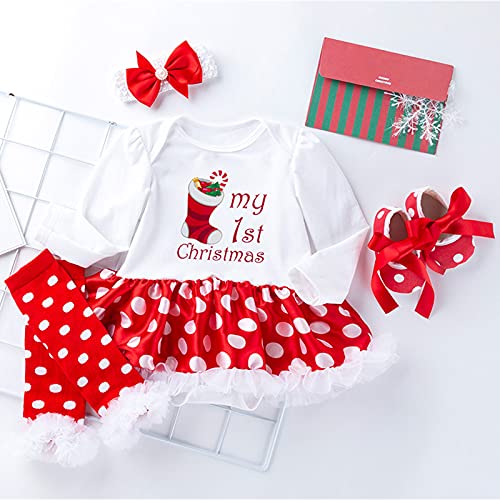 4 Stks Pasgeboren Baby Meisjes Kerst Outfit Hoofdband Tutu Jurk Beenwarmer Schoenen Set voor Baby Meisje 0 ~ 24 Maanden