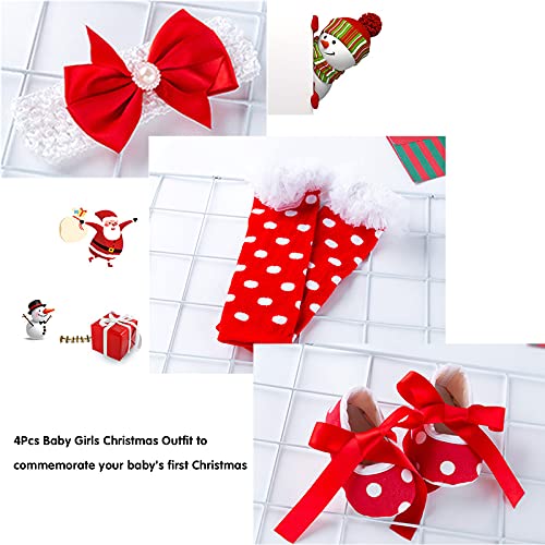 Specification: 4 Stks Pasgeboren Baby Meisjes Kerst Outfit Hoofdband Tutu Jurk Beenwarmer Schoenen Set voor Baby Meisje 0 ~ 24 Maanden